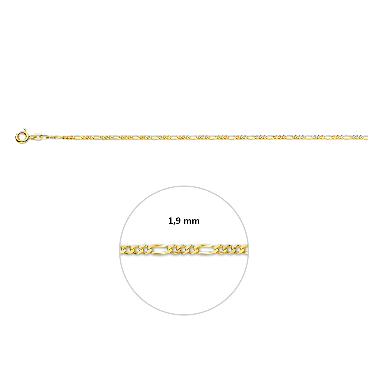 9k Geel kleurig lengteartikelen met figaro schakel. De schakelbreedte is 1.9mm.