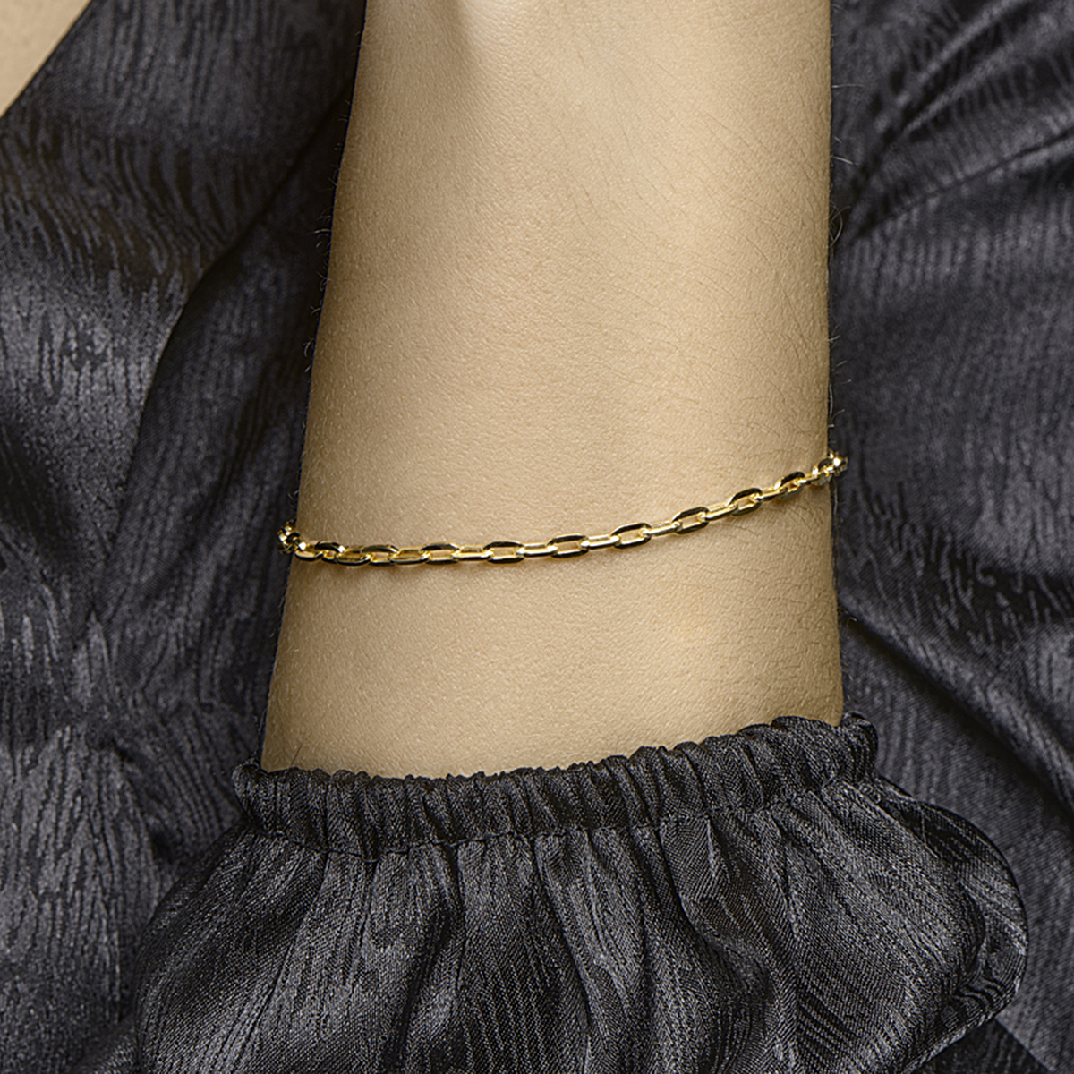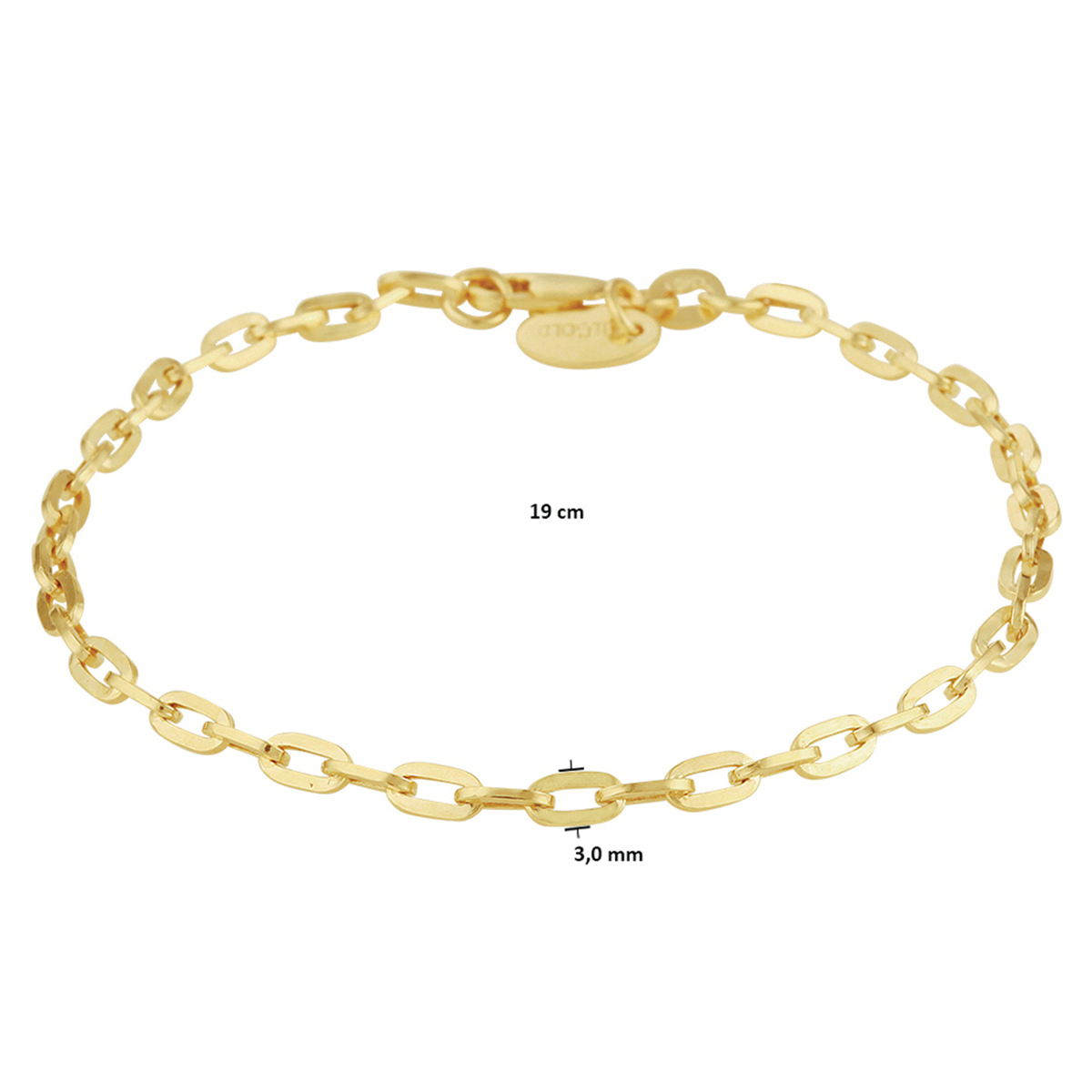 14k Geelgouden anker armband met daarin een kern van 925 zilver. De armband heeft een schakelbreedte van 3mm, een draaglengte van 19cm en is uitgevoerd met een stevige karabijn sluiting.
