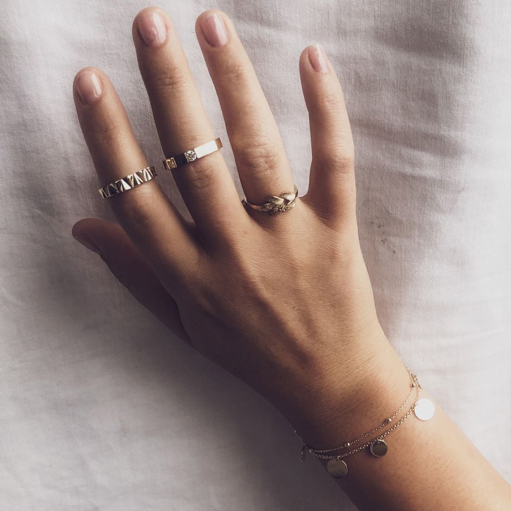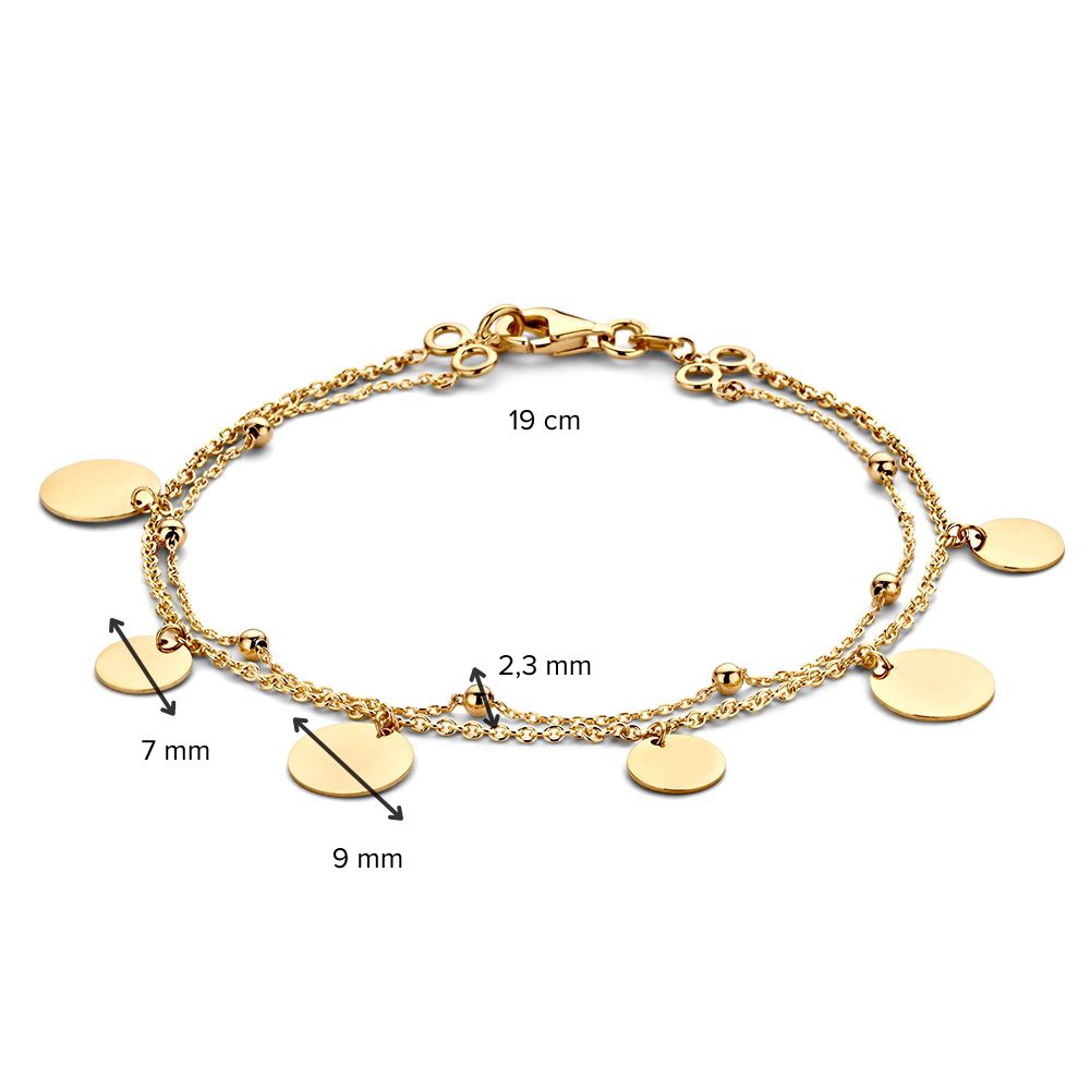 Dubbele geelgouden armband met bolletjes en hangende coins.