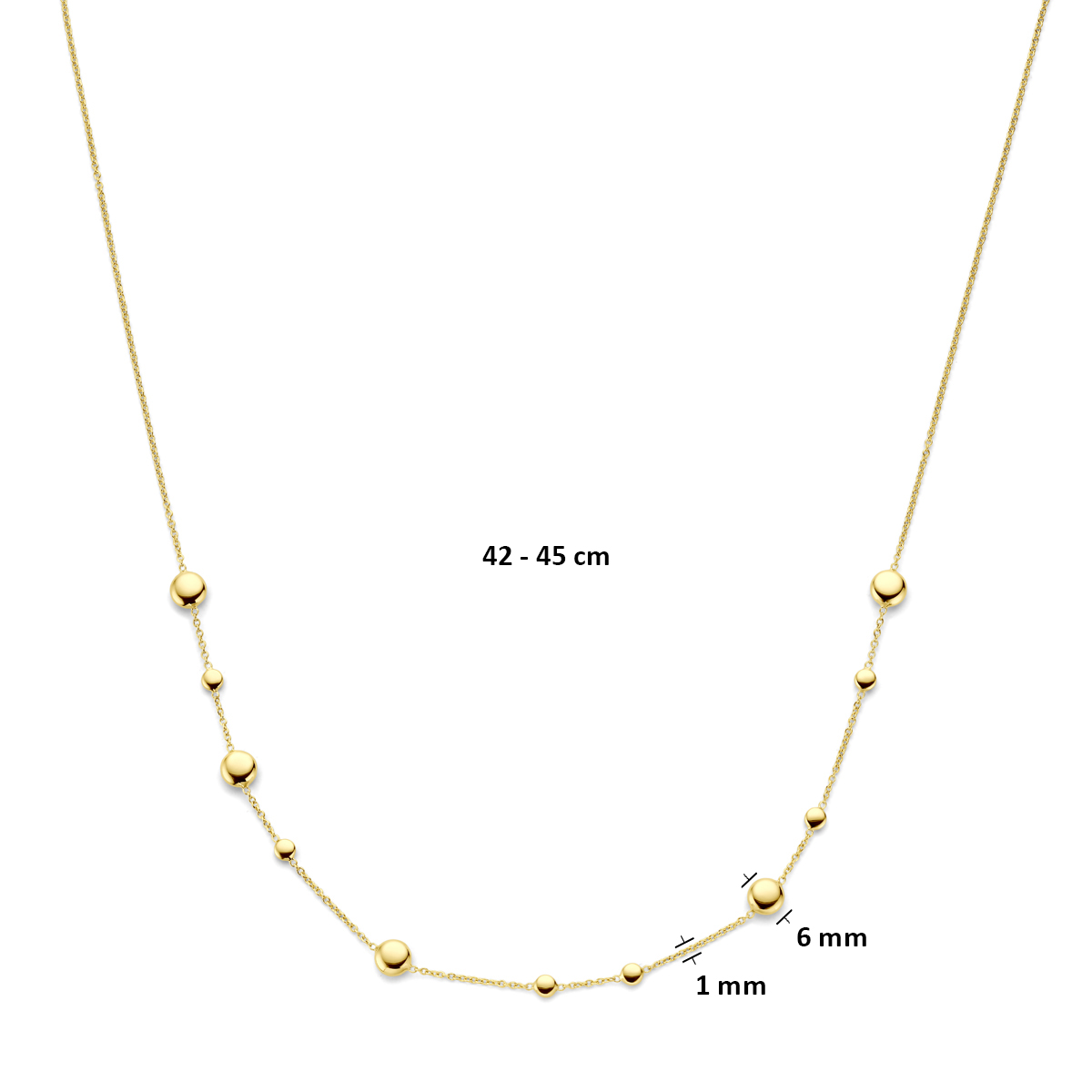 14k Geelgouden collier met draaglengte van 42-45cm en een schakelbreedte van 1mm. Uitgevoerd met karabijnsluiting.