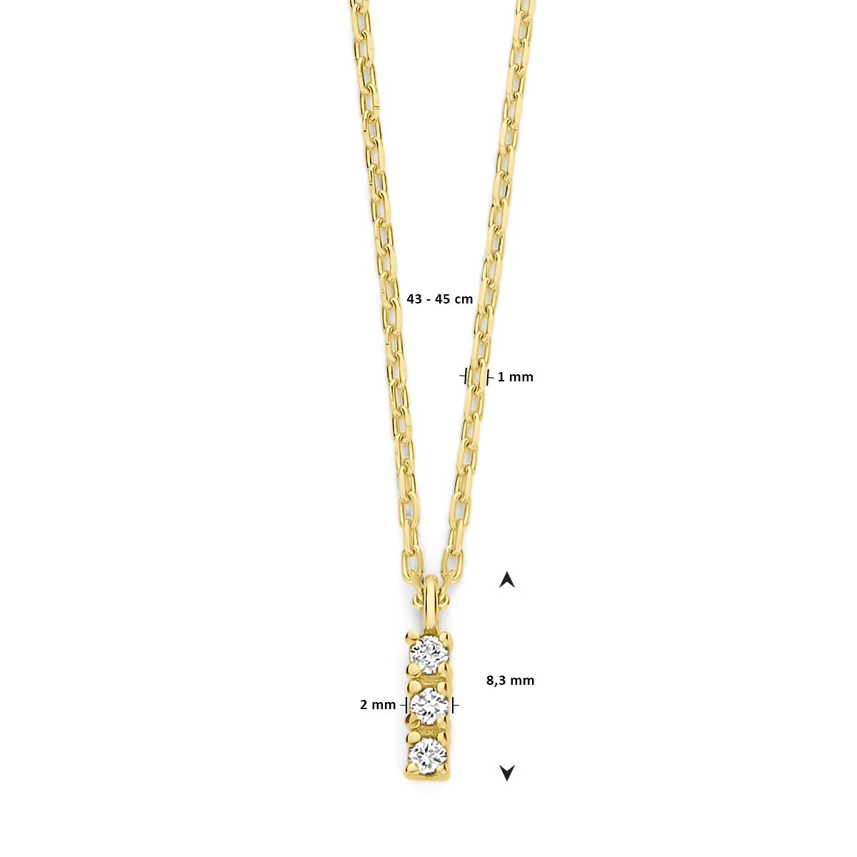 14k Geelgouden collier uitgevoerd met schitterende diamant. Het collier heeft een schakelbreedte van 1mm en draaglengtes van 43-45cm.