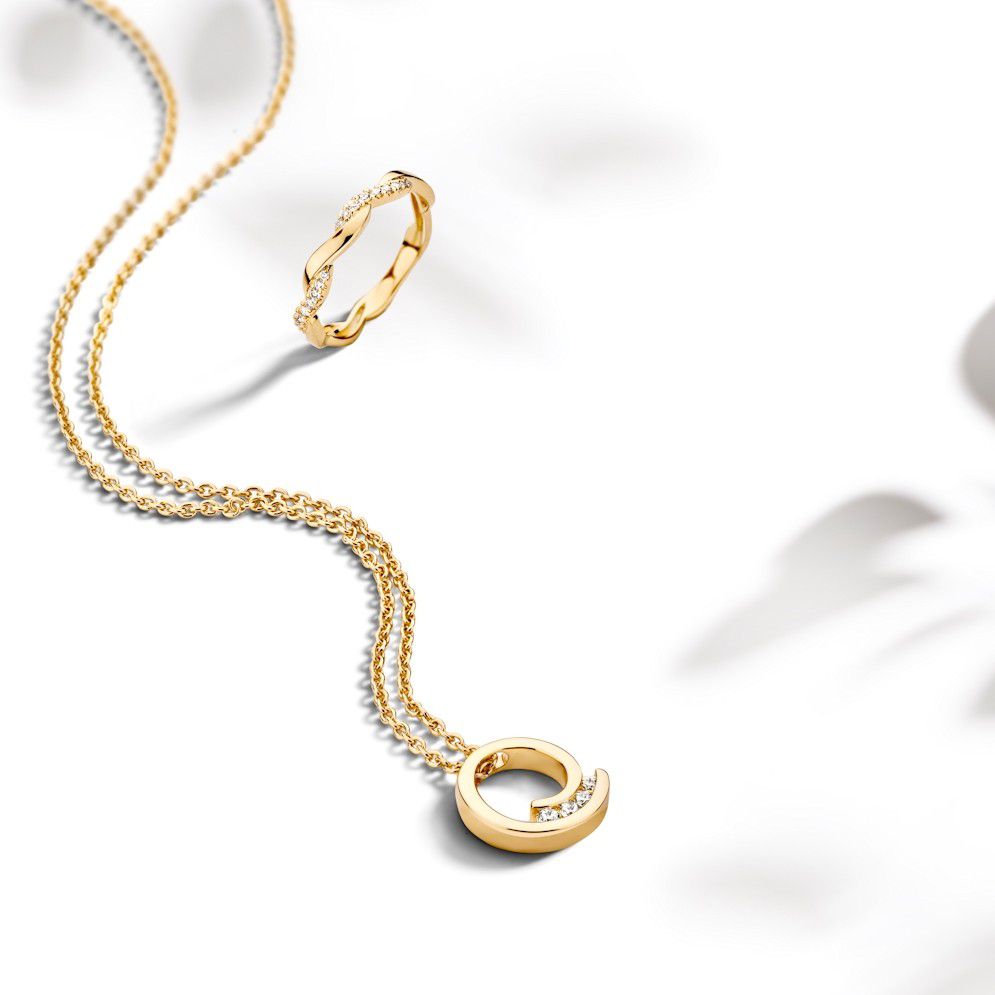 Geelgouden collier met diamanten hanger.