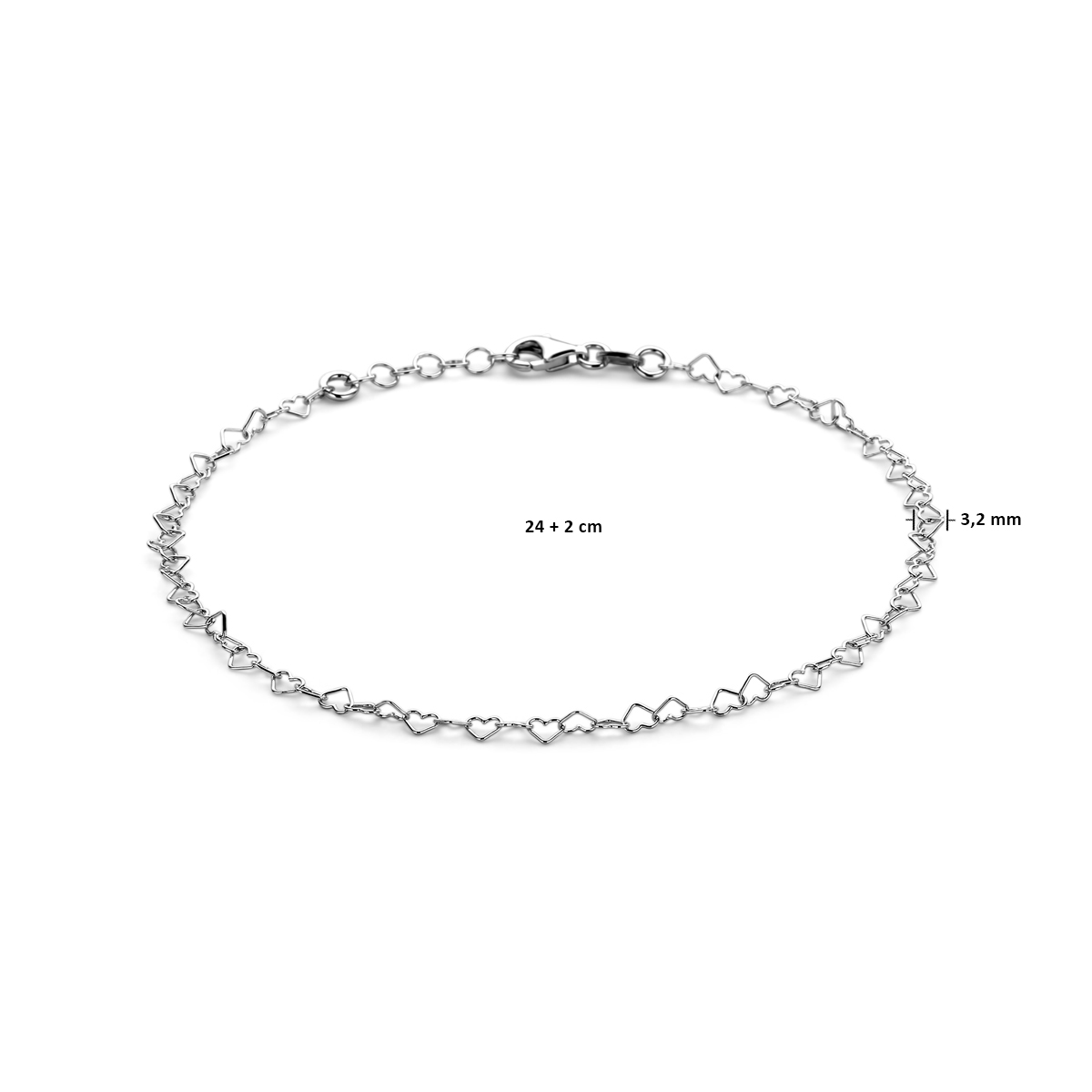 Gerhodineerd zilveren enkelbandje met een draaglengte van 24cm en een extensie van 2cm. Het enkelbandje is uitgevoerd met een karabijn sluiting.