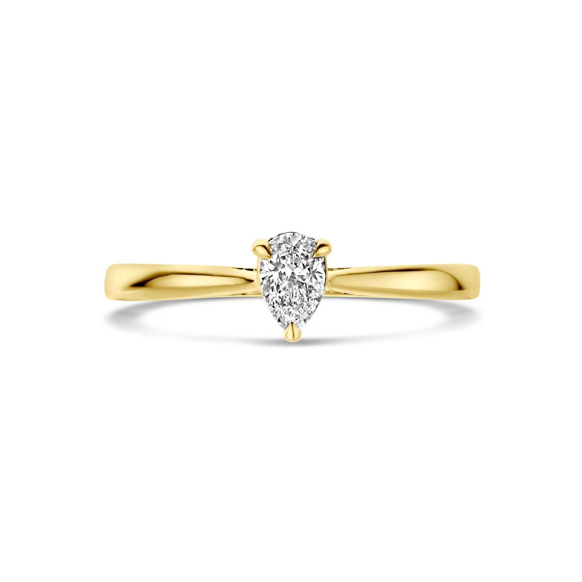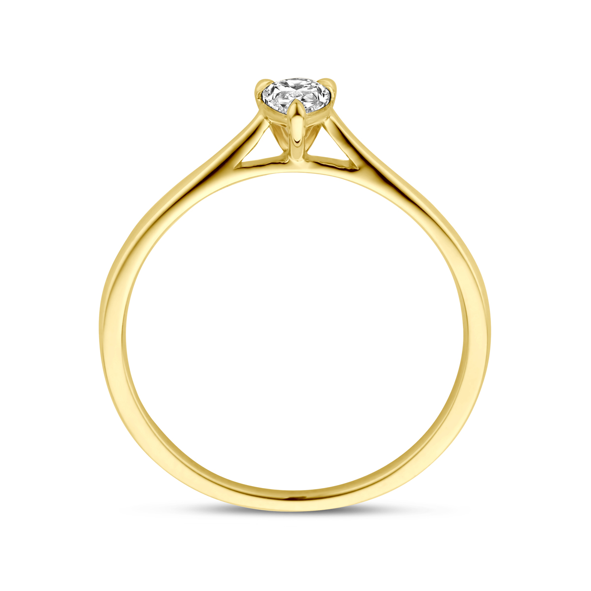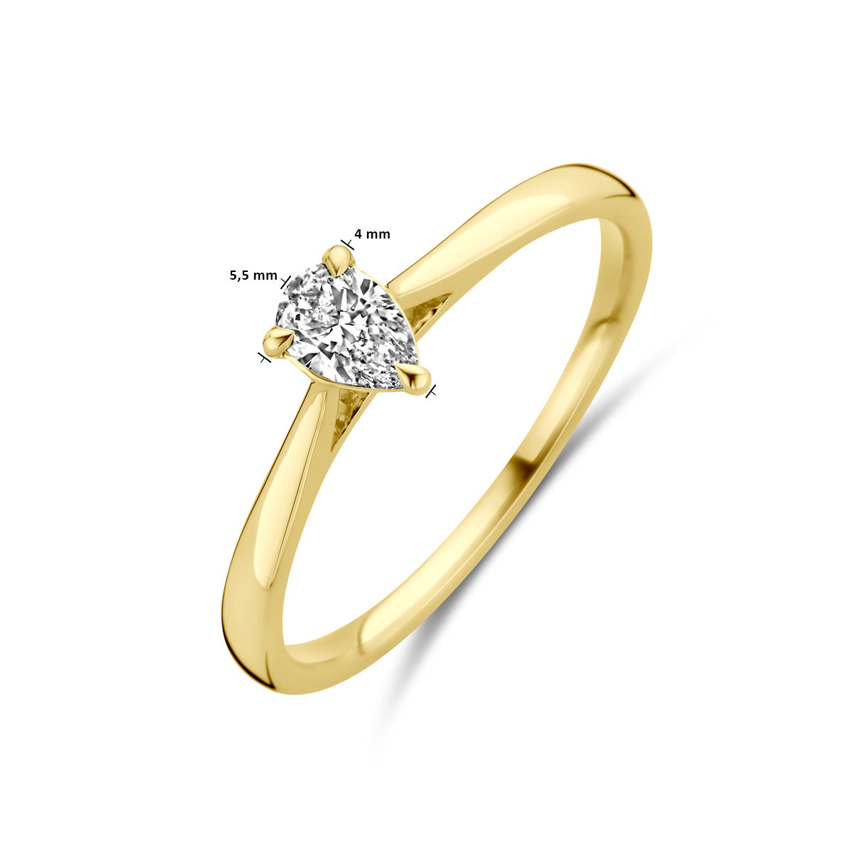 14k Geelgouden ring uitgevoerd met lab grown diamant. De ring heeft een afmeting van 5.5x4mm. Het diamantgewicht is 0.25ct. Lab grown diamanten zijn diamanten die ontstaan in een laboratorium. Onder extreem hoge druk en temperatuur wordt het natuurlijk ontstaansproces nagebootst met als eindresultaat een diamant met dezelfde chemische eigenschappen maar met een andere oorsprong.