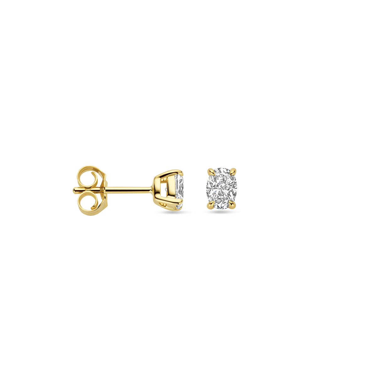14k Geelgouden oorknoppen uitgevoerd met lab grown diamant. De oorknoppen hebben een afmeting van 5x3.5mm. Het totale diamantgewicht is 0.50ct. Lab grown diamanten zijn diamanten die ontstaan in een laboratorium. Onder extreem hoge druk en temperatuur wordt het natuurlijk ontstaansproces nagebootst met als eindresultaat een diamant met dezelfde chemische eigenschappen maar met een andere oorsprong.