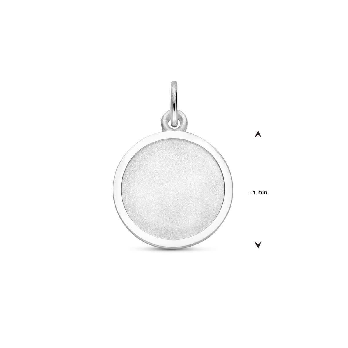 Gerhodineerd 925 zilveren graveerhanger met een totale hoogte van 20mm uitgevoerd in poli/mat. De hanger heeft een totale hoogte van 14mm en een dikte van 0,7mm.