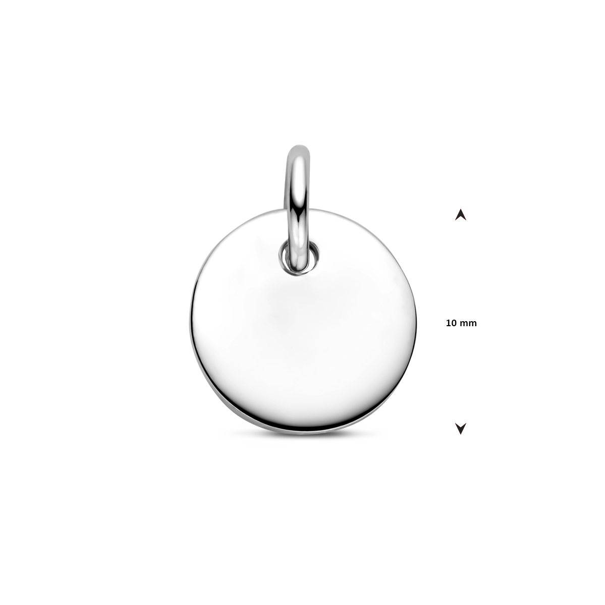 Gerhodineerd zilveren ronde graveerhanger met een stevig hangoog. De hanger heeft een dikte van 1mm.