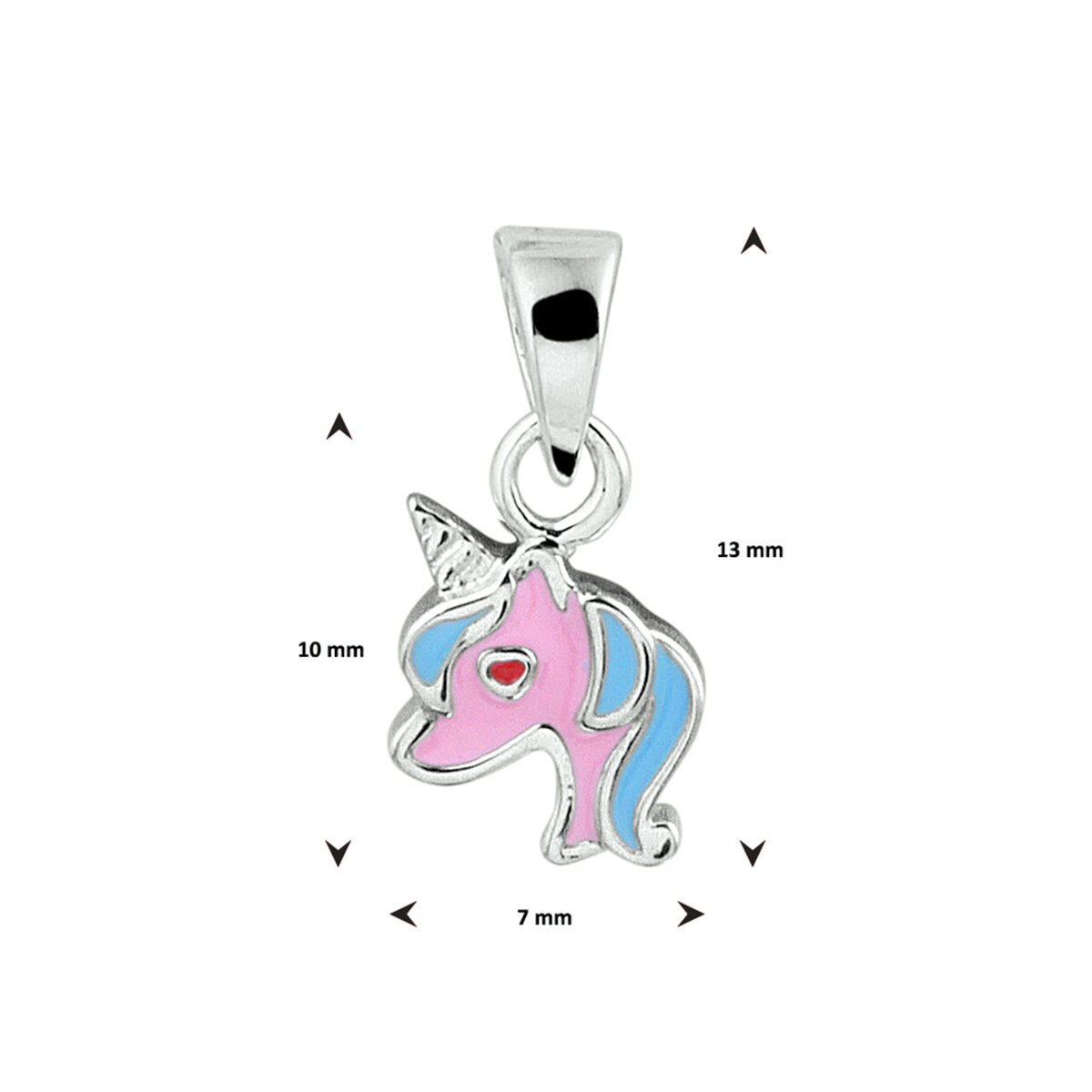Schattige gerhodineerd zilveren fantasie eenhoorn hanger met een afmeting van 13x7mm. Deze hanger is perfect te combineren met bijpassende sieraden uit onze collectie. Tip: Leuk om kado te geven zie je ze al stralen!? Info: Gerhodineerd zilver is door de rhodiumlaag beter bestand tegen verkleuren en krassen.