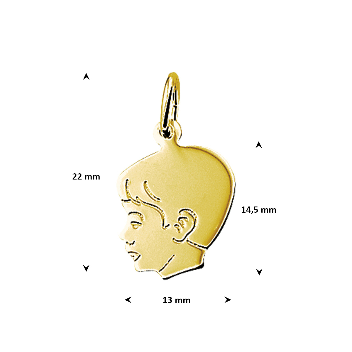 Geelgouden hanger met een kinderhoofdje. De hanger heeft een hoogte van 14,5mm excl. oogje.