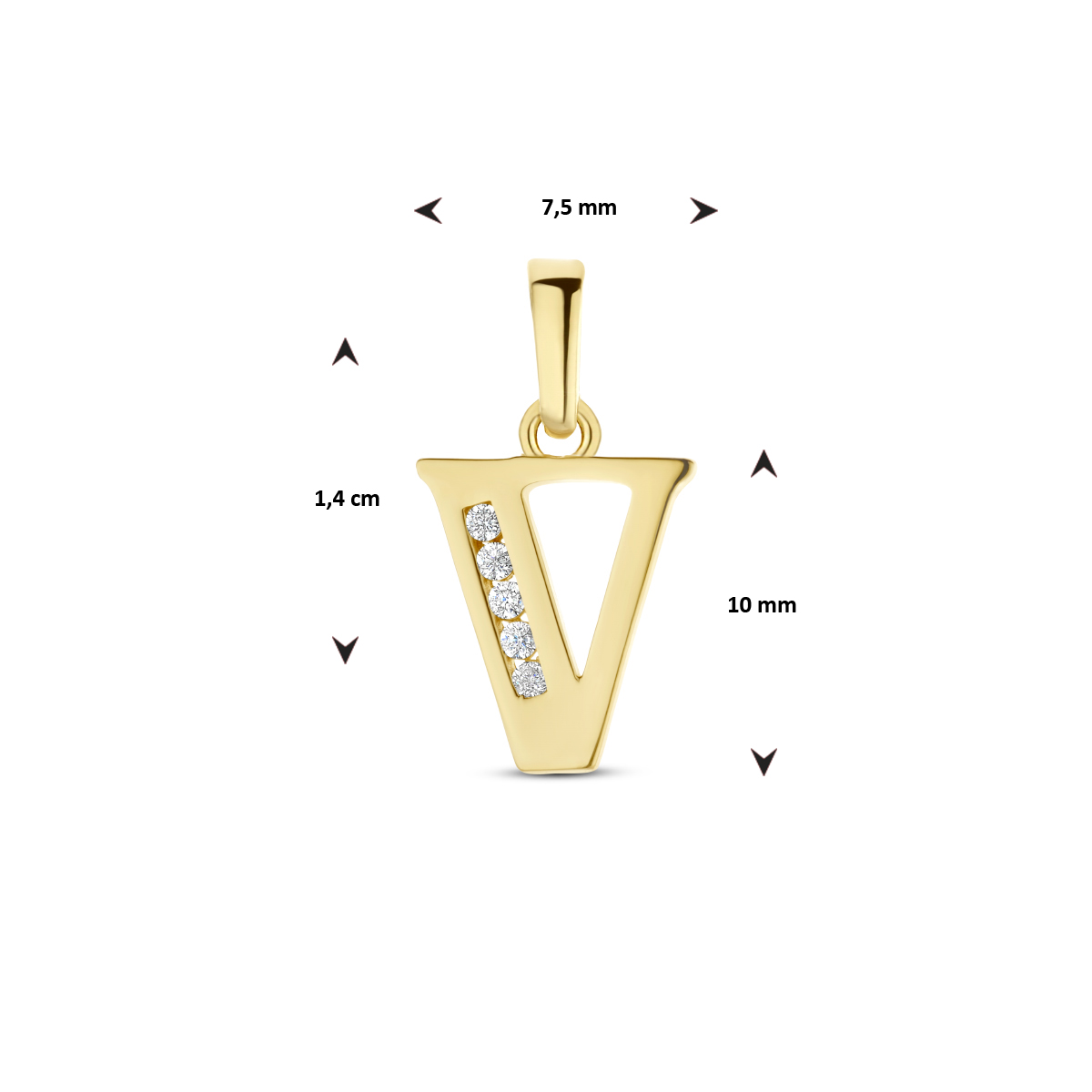 14k Geelgouden hanger in de vorm van een letter. Uitgevoerd met heldere zirkonia.