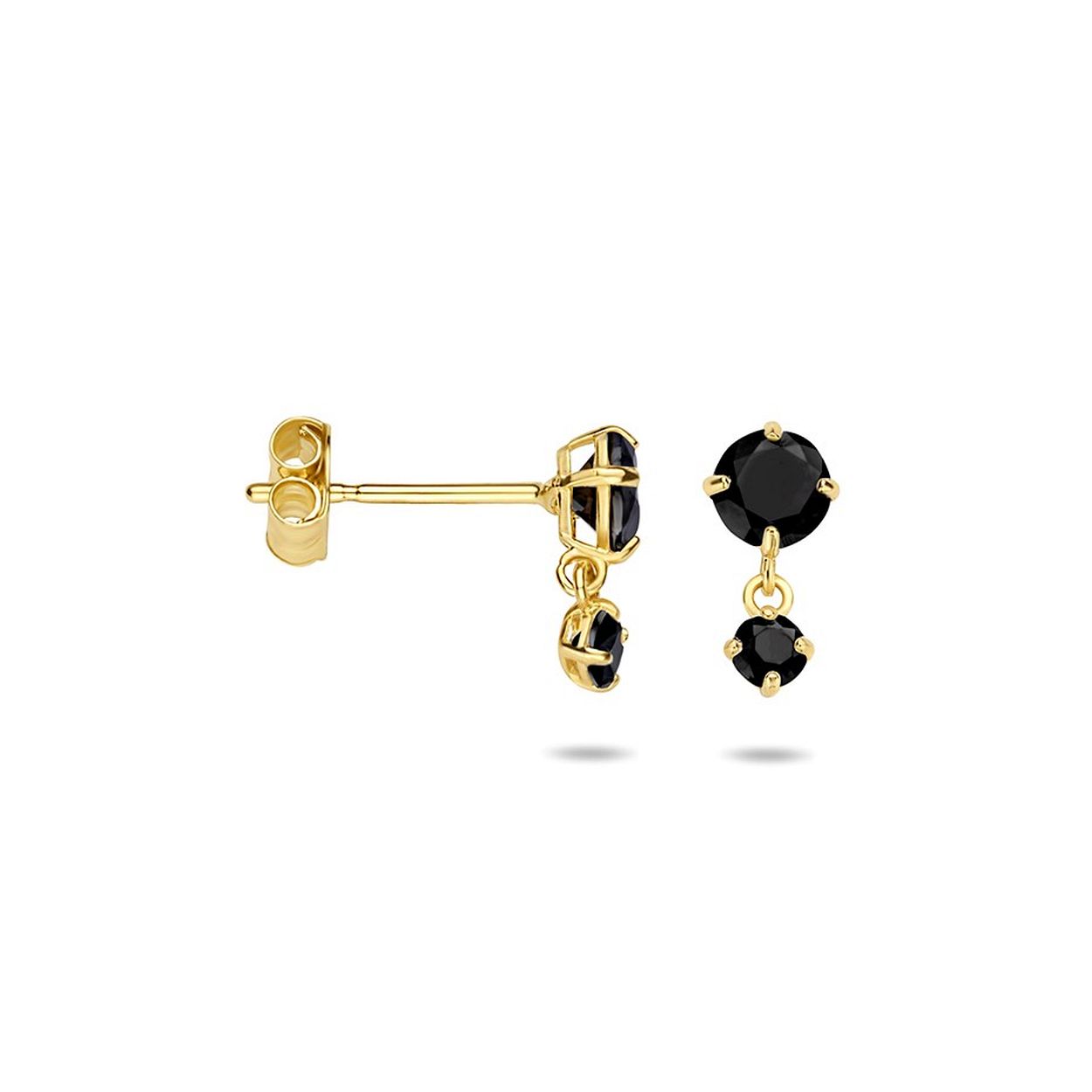 14k Geelgouden oorhangers uitgevoerd met schitterend zwart zirkonia. De oorhangers hebben een een totale hoogte van 0.8cm en een breedte van 4.4mm.