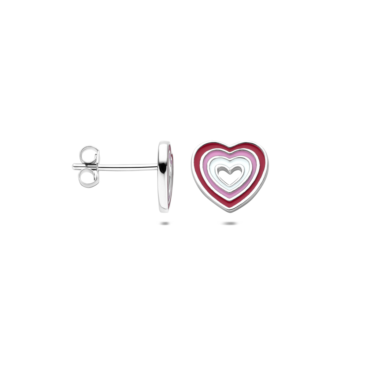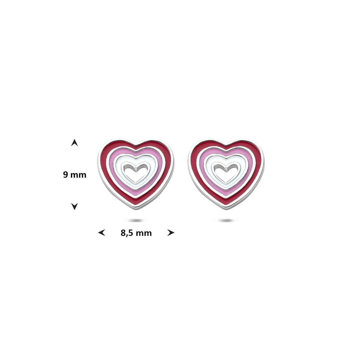 Gerhodineerd 925 zilveren oorknoppen uitgevoerd met een emaille hartje. De oorknoppen hebben een afmeting van 9x8,5mm.