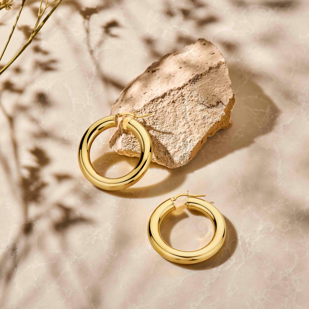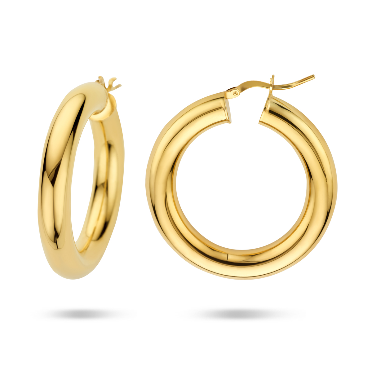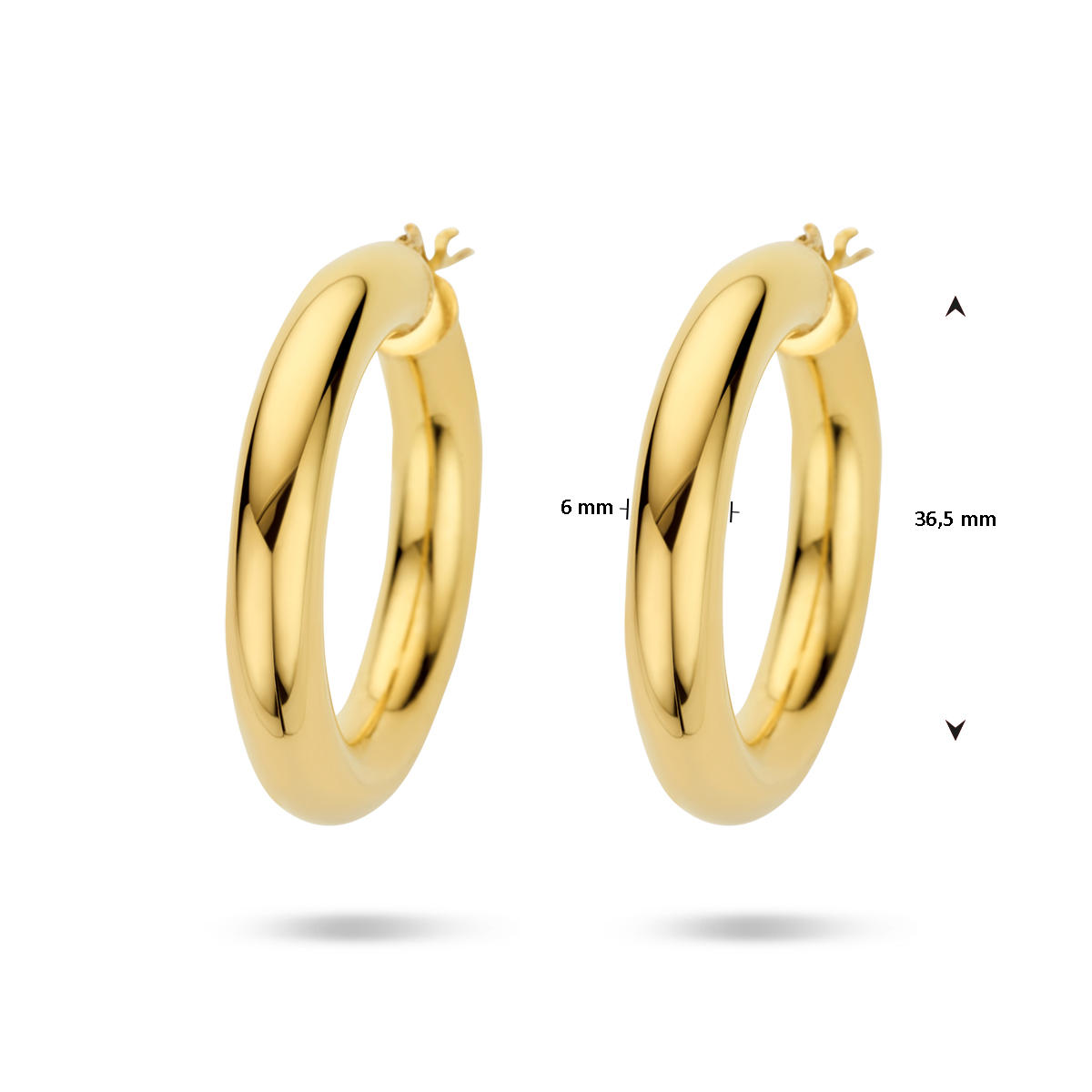 Verguld op 925 zilveren oorringen met een ronde buis. De buis heeft een dikte van 6mm. Geen garantie op plating.