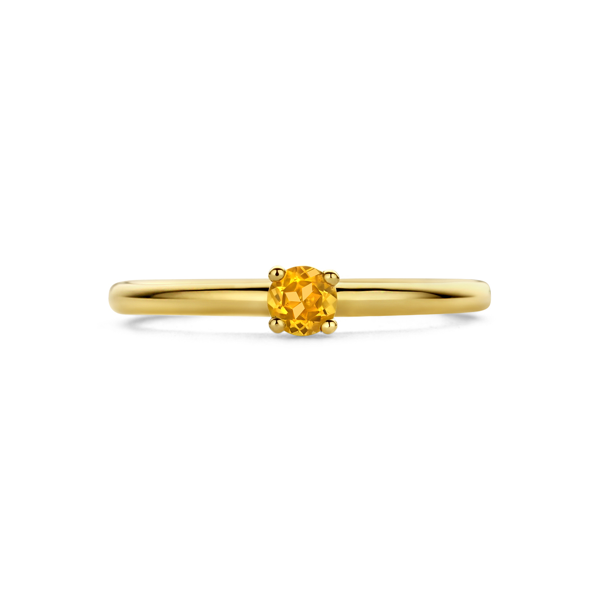 14k Geelgouden ring uitgevoerd met citrien. De ring heeft een breedte van 3.5mm.