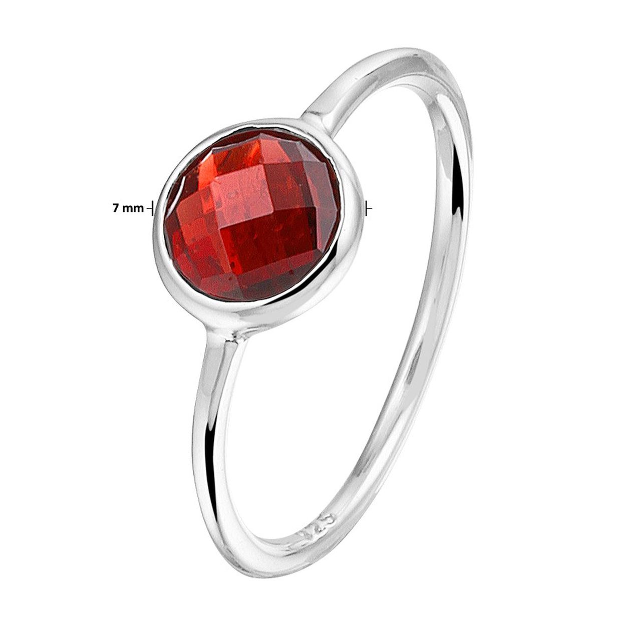 Stijlvolle gerhodineerd 925 zilveren ring uitgevoerd met een schitterende granaat. De ring heeft een breedte van 7mm.