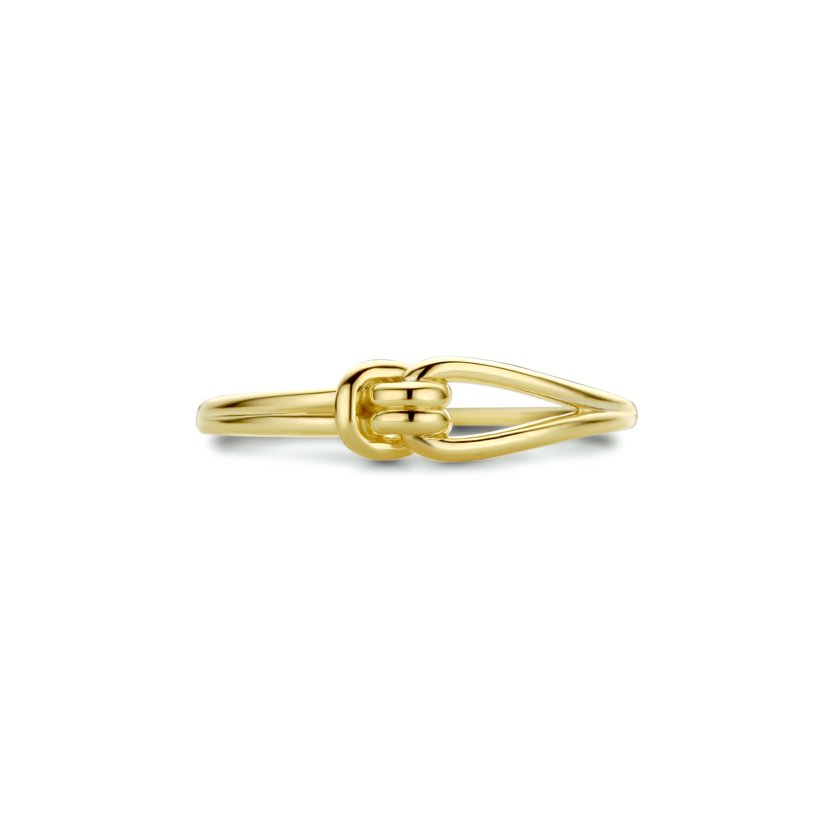 14k Geelgouden ring uitgevoerd met een knoop. De ring heeft een breedte van 4.5mm.