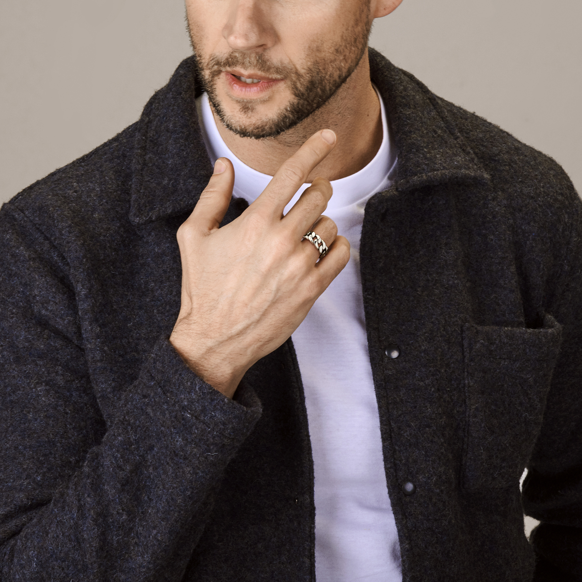 Geoxideerd 925 zilveren ring. De ring heeft een breedte van 10mm