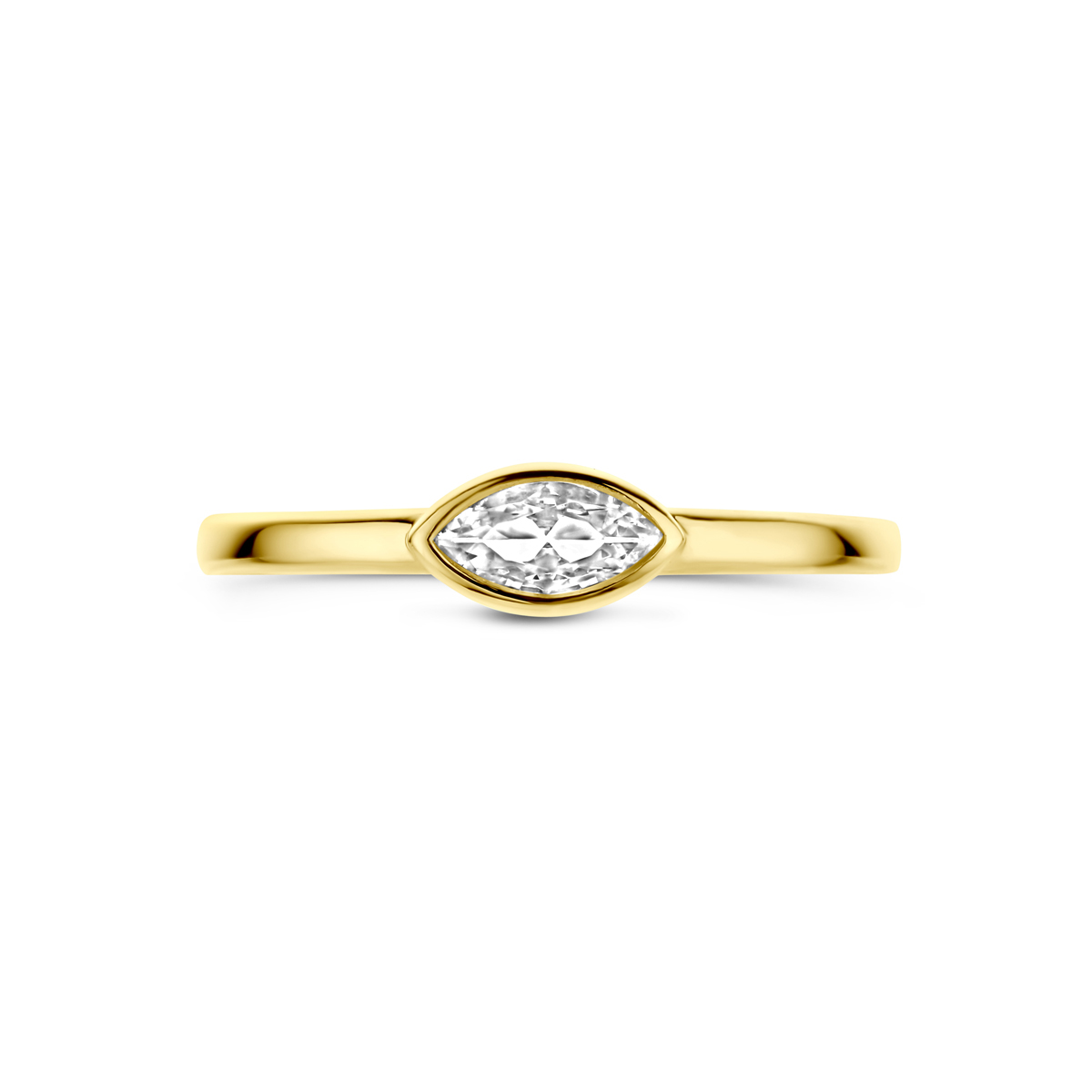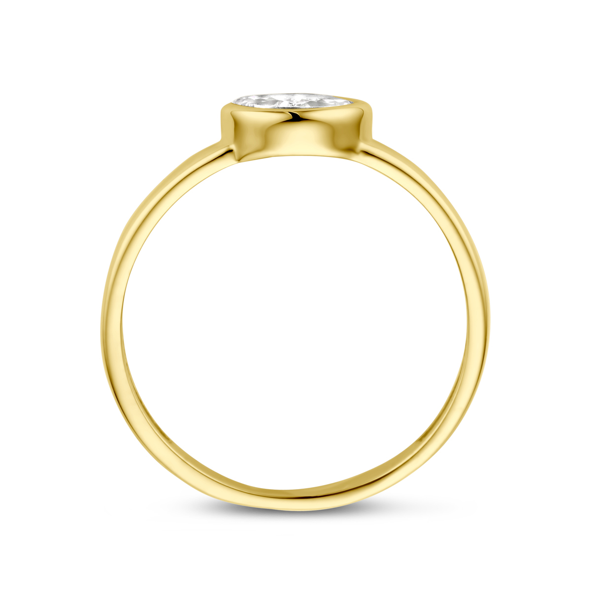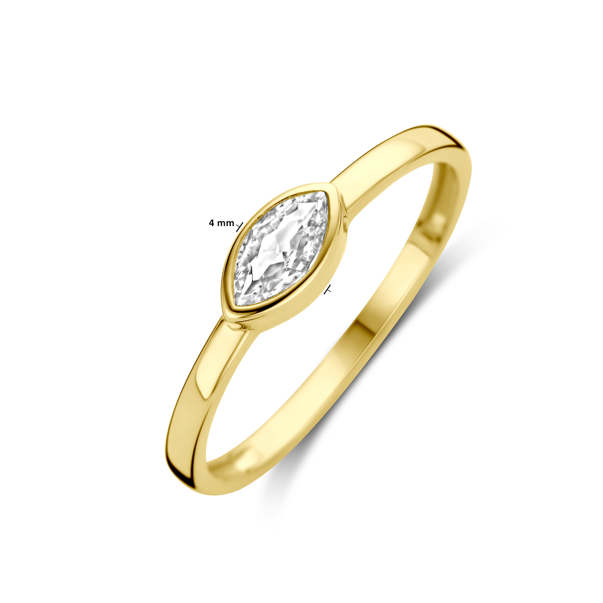 14k Geelgouden ring uitgevoerd met zirkonia. De ring heeft een afmeting van 4x7.5mm.