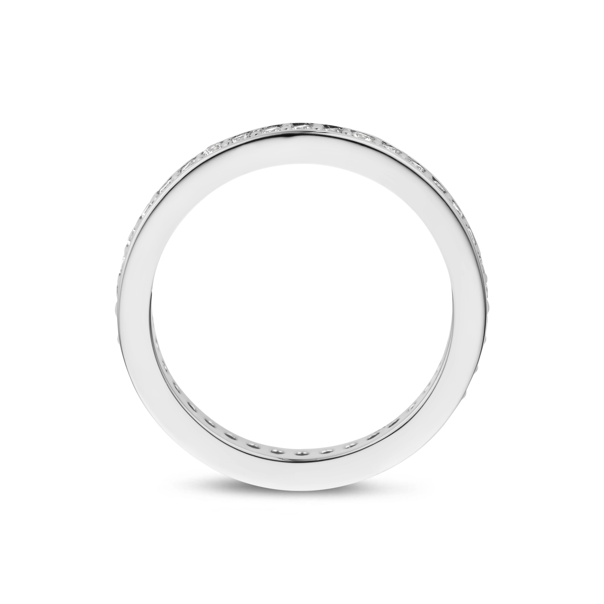 Gerhodineerd 925 zilveren ring uitgevoerd met zirkonia. De ring heeft een breedte van 2.5mm.