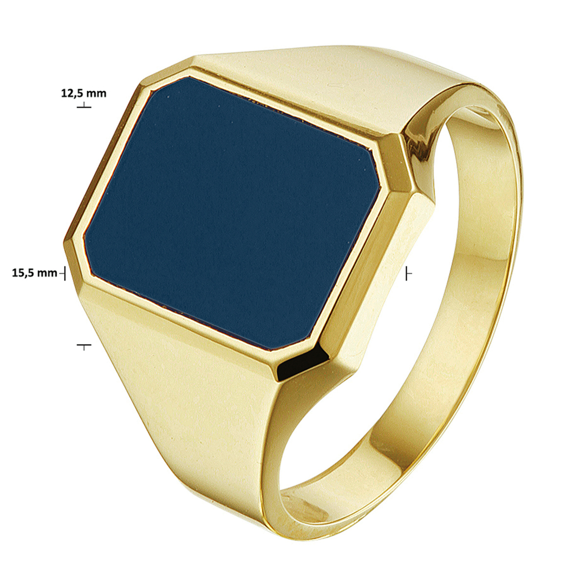 Stijlvolle geelgouden zegelring uitgevoerd met een lagensteen. De robuuste afkanteningen van de ring maken dit sieraad helemaal af. De ring geeft je look direct een chique uitstraling.