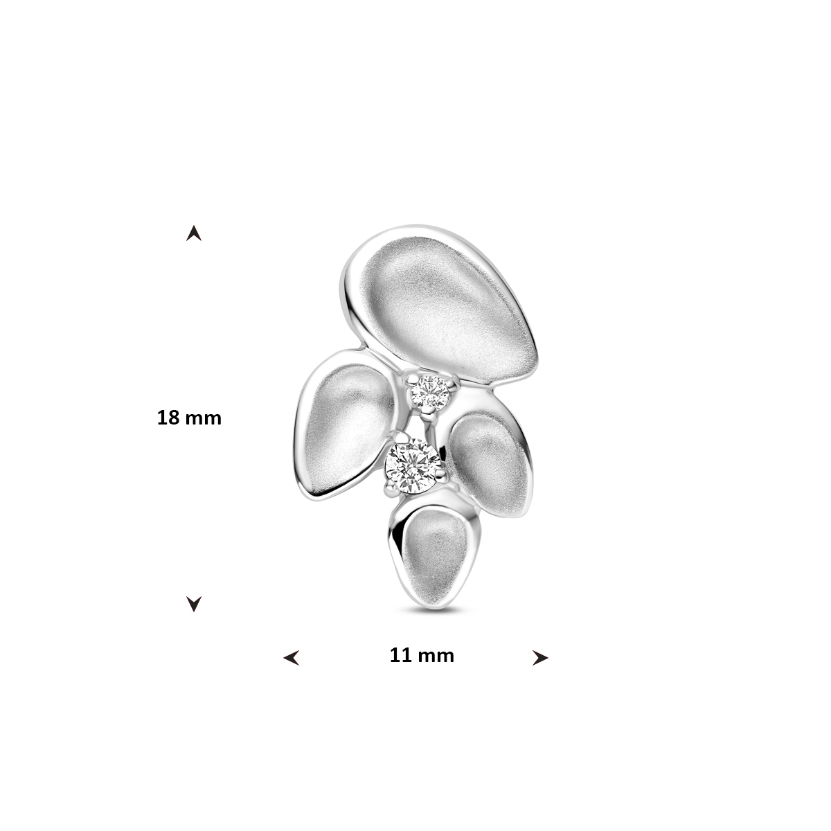 Gerhodineerd 925 zilveren hanger uitgevoerd met zirkonia. De hanger heeft een afmeting van 18x11mm.